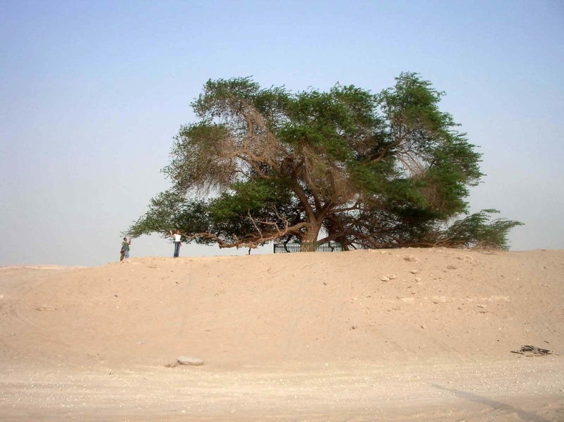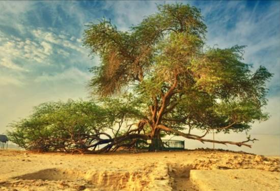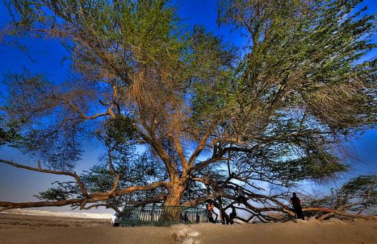 | У пустелі Бахрейну, де немає ні поверхневих, ні грунтових джерел води, абсолютно незбагненним чином ось уже 400 років росте самотнє дерево акації, назване місцевими жителями "Хаджарат аль Хая" (Shajarat al-Hayah), що в перекладі означає "Дерево життя". Згідно з біблейськими переказами, в Бахрейні розташовувалися райські сади Едему, тому Дерево життя багато хто називає деревом з садів Едему. Самотня акація стала основною визначною пам'яткою Бахрейну, туристів тягне відчути причетність до таємниці й доторкнутися до символу виживання і перемоги над обставинами. Сохранение уникальных видов флоры Учені не раз намагалися розгадати секрет життєздатності чудо-дерева. За однією версією, існує підземна річка, яка живить коріння, але знайти її ще нікому не вдалося. Є малопереконлива теорія, що дерево живлять вологою особливі бактерії, які видобувають її мало не з піску. Інші вважають, що коріння сягає дуже глибоко під землю, де досягають невідомих джерел води. А бедуїни впевнені, що дерево росте з благословення містичного бога води Енкі. Як би там не було, але це все припущення ... Розгадки немає, а дерево продовжує рости. | |
