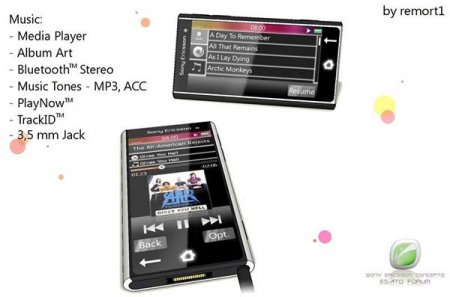 У черговий раз мережеве співтовариство Esato радує нас новим концептом телефону Sony Ericsson, головними перевагами цього пристрою є призначений для користувача інтерфейс Xcellent і 12,1-мегапіксельна камера. Камера підтримує такі функції як автофокус, ручна фокусування на сенсорному дисплеї, запис відео, геотаггінг, розпізнавання осіб і, звичайно, є ксеноновий спалах. Втім, всім цим функції камери не обмежуються, є виявлення посмішок, усунення ефекту червоних очей і цифровий 16-кратний зум. Список технічних специфікацій включає в себе стереопрофіль Bluetooth, функції TrackID, PlayNow, гніздо 3,5 мм для навушників і великий сенсорний дисплей. ![]() | |